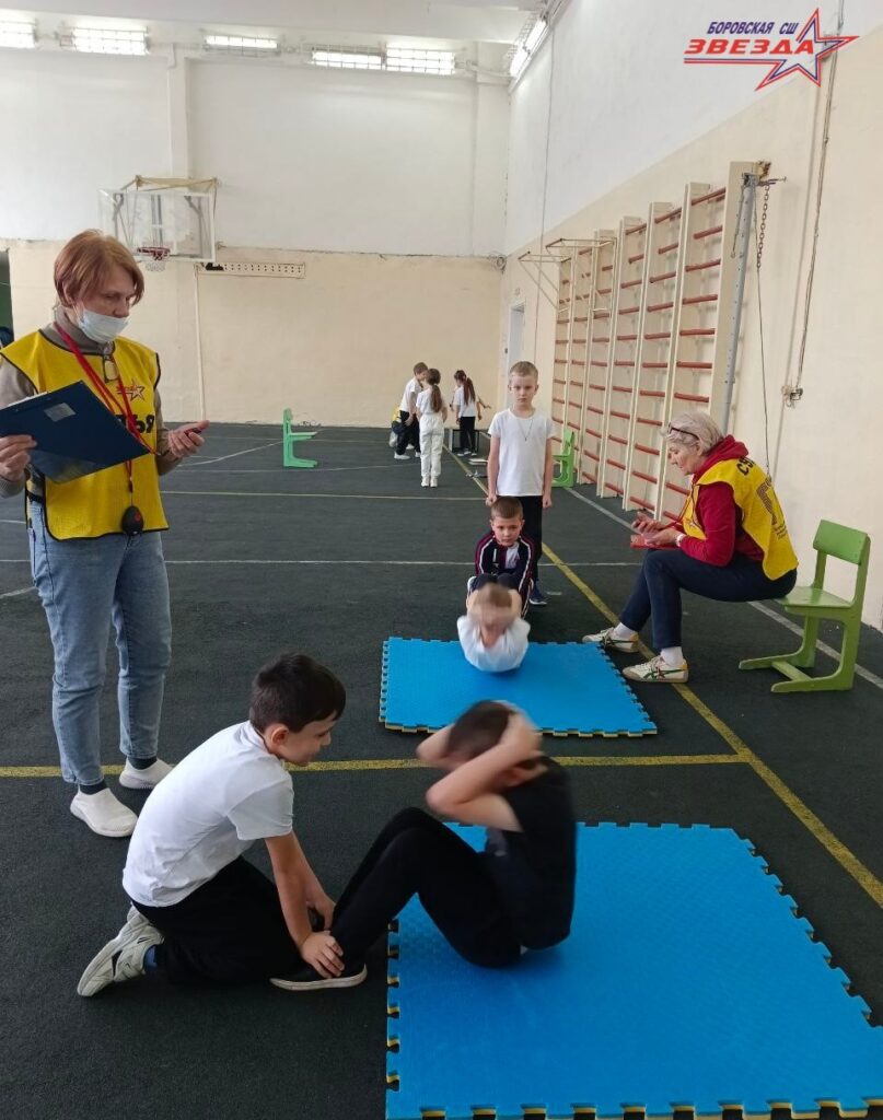 💫Учащиеся выполняли нормативы по 💪силовой гимнастике: сгибание и разгибание рук в упоре лежа на полу, наклон вперед из положения стоя на гимнастической скамье, прыжок в длину с места толчком двумя ногами, поднимание туловища из положения лежа на спине, челночный бег 3х10 м..